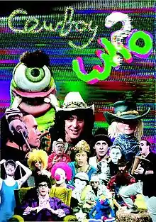 Each season was distinct from the others in that the overall structure of the show changed between them, and the cast of characters on the show's primary set (the "studio") decreased with each season as it focused more on content purportedly generated outside of the studio (e.g. "alien television programs"). In the third season, only "Cowboy Slim" is left, and in the final season, even he has left the studio — leaving in his place an "Automatic Telepathic Interface" that supposedly "reads the minds of the viewers" to choose what to show next — using an almost reductio ad absurdum minimalism as a means of deconstructing the television program as a medium of popular culture. The stylistic device of television programs within television programs was used to stave off heavy repetition by allowing the producers the freedom to insert near-random material into the individual shows. Heavy reliance was made throughout the production on short segments of other "shows" and "commercials" — all written, directed, and produced by the Cowboy Who? team, and featuring the primary set of performers, as well as performers brought in specifically to do the segments.[4] Season one has a strong plotline that runs throughout the shows, and season two has three sub-plots that each run for most of the shows. Seasons three and four dispense with overarching plots, and use a premise to provide an almost variety show format — where season three has a host ("Cowboy Slim"), and season four features an "Automatic Telepathic Interface" that purportedly "allows the viewers to choose from a list of available programs by their thoughts".