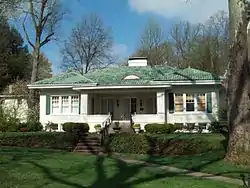 Cox-Parks House is a historic home located at Charleston, West Virginia. Emma Cox, the wife of Frank Cox, leader of several coal companies in the Kanawha Valley, had this home built for herself in about 1925 when she gave the old "Home Hill" to her daughter's family. It is an elaborate bungalow in the Prairie School-style. The exterior features clean white stucco and green tile and a double entrance and flanking double windows, housed by a recessed porch.[2]
