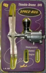 - In 1950 with sales of the car proving to be a success Cox moved on to development of a model plane engine.[3] Cox felt the need for dependable, easy-to-start engines and spent eight months of 1950 in research.[4] His three-man engineering crew (himself, Mark Mier and Bill Fogler)[5] spent seven days a week, day and night, developing the .049 Space Bug contest engine.[6] The result was the Space Bug .049 Contest engine, Cox's first model plane engine which was completed in October 1951.[7]