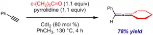 The Crabbé reaction is applicable to a limited range of ketone substrates for the synthesis of trisubstituted allenes; however, a near stoichiometric quantity (0.8 equiv) of cadmium iodide (CdI2) is needed to promote the reaction.[8] Alternatively, the use of cuprous bromide and zinc iodide sequentially as catalysts is also effective, provided the copper catalyst is filtered before zinc iodide is added.[9]