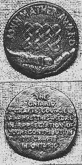 The Mather Award medal was designed by Jim Wies. A hand and the OCC logo decorate one side of the medal, which is cast in bronze in high relief. The reverse side of the medal has the inscription: "The Ontario Crafts Council awards this medal in appreciation of your contribution to craft in Ontario." The Mather family commissions the casting of the medals as well as the presentation piece for the medal, designed by Toronto-based artist and woodworker Joel Robson.[15] In the past, this presentation piece was designed by Michael Fortune.