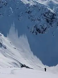 Craigieburn Valley Ski Area is a club skifield in the Southern Alps of New Zealand's South Island, about 104 km west from Christchurch.[3] Catering only to intermediate and advanced skiers, it features a vertical range of 1308–1811 m, 400 Acres of skiable area and 3 fast rope tows. The resort has several ski lodges but no gear hire.[1] It is also the base for ski touring expeditions when conditions permit. It is immediately adjacent to the Broken River Ski Area, with which it shares a ski pass system. Skiing between the two is possible with backcountry ski touring involved .[3]