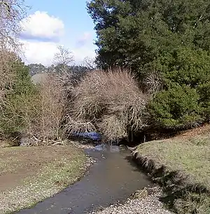 Crane Creek is a stream in Sonoma County, California, United States which rises in the northern Sonoma Mountains.[2] This watercourse flows through Crane Canyon and the Crane Creek Regional Park[3] situated on the northwestern flank of Sonoma Mountain. Crane Creek forms a confluence with Hinebaugh Creek in the city of Rohnert Park; thereafter, the channelized [4] Hinebaugh Creek flows westerly to discharge to the Laguna de Santa Rosa. Hiking access to the upper Crane Creek reaches is from Roberts Road off Petaluma Hill Road.[5]