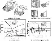 • Computer model: Because of the cost of full-scale crash tests, engineers often run many simulated crash tests using computer models to refine their vehicle or barrier designs before conducting live tests.