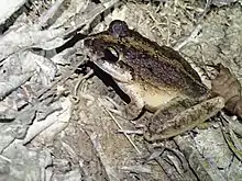 Craugastor sabrinus, also known as the long-legged streamfrog, is a species of frog in the family Craugastoridae.[1][2] It is found in Belize and eastern Guatemala.[1][2] The specific name sabrinus is derived from the Latin sabrina, meaning "river nymph", and alludes to the stream-side habitat of this species.[3]