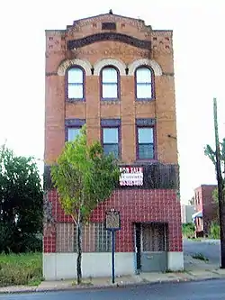 The Crawford Grill can be best understood as the outgrowth of a broader set of social institutions that flourished in the Hill District neighborhood in the early 1900s. Known as "black-and-tan clubs", these venues featured black artists and catered to mixed-race patrons.[1] The Leader House (1401 Wylie Ave.) and the Collins Inn (1213 Wylie Ave.) were two "black-and-tan clubs" that operated in the 1910s that were important because they offered a means through which entrepreneur William "Gus" Greenlee would enter the entertainment industry in the Hill District and would later become the Crawford Grill and Black Musicians' Union Club. The high standard of entertainment was established by pianist Earl Hines, who began his career as a jazz musician in the Hill District when he was hired by bandleader Lois Deppe to perform at the Leader House, and violinist Vernie Robinson at the Collins Inn.[2] In 1922, the Collins Inn became the Paramount Inn under the ownership of Greenlee, who would become one of the Hill's most prominent African-American businessmen and owner of the Negro league baseball team the Pittsburgh Crawfords.[3] But the club had already had several owners by the time Greenlee acquired it in 1933.[4] It was purchased by Scott Bailey in 1932[5] and soon after was managed by James Brown, a local chef.[6] Brown remained when Greenlee acquired the business. Nevertheless, Greenlee may be soundly credited for making the club famous. Greenlee's remodeled held its grand opening on Christmas Eve of 1933.[7] A formal opening took place the following January.[8] It was the first in the neighborhood to receive a liquor license (prohibition had been repealed for less than a month). An enthusiastic announcement in the Pittsburgh Courier promised patrons a bar designed after a Spanish hacienda, with "cool drinks and good food served in ultra, ultra style."[7] The Crawford Grill had several incarnations at different addresses during its lifetime.