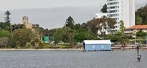 The Crawley Edge Boatshed is a well-recognised and frequently photographed site in Crawley.[7] It is thought to have been originally constructed in the early 1930s. It has changed hands several times, and after being refurbished in the early 2000s, it was re-launched by triple solo-circumnavigator of the world, Jon Sanders, and single solo-circumnavigator David Dicks.