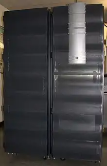 The Cray J90 series (code-named Jedi during development) was an air-cooled vector processor supercomputer first sold by Cray Research in 1994. The J90 evolved from the Cray Y-MP EL minisupercomputer, and is compatible with Y-MP software, running the same UNICOS operating system. The J90 supported up to 32 CMOS processors with a 10 ns (100 MHz) clock. It supported up to 4 GB of main memory and up to 48 GB/s of memory bandwidth, giving it considerably less performance than the contemporary Cray T90, but making it a strong competitor to other technical computers in its price range. All input/output in a J90 system was handled by an IOS (Input/Output Subsystem) called IOS Model V. The IOS-V was based on the VME64 bus and SPARC I/O processors (IOPs) running the VxWorks RTOS. The IOS was programmed to emulate the IOS Model E, used in the larger Cray Y-MP systems, in order to minimize changes in the UNICOS operating system. By using standard VME boards, a wide variety of commodity peripherals could be used.