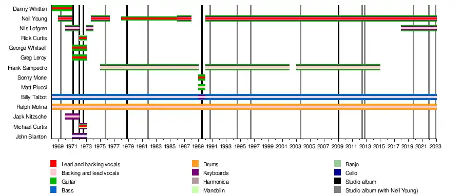 - Neil Young – lead vocals, lead guitar, keyboards, harmonica (1969–1970, 1973–1976, 1978–1987, 1990–present;)