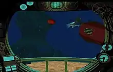 Players control a submarine in first-person perspective.[3] Gameplay involves exploring the ocean, where players encounter marine life such as dolphins and whales.[2] Players also encounter Syndicate installations such as genetic laboratories and research bases, as well as their cybernetically-enhanced creatures called G-Sharks.[1] The world's fungi causes Earth's marine life to enter a psychotic frenzy, as well as attracting Cetacea to consume their tendrils.[1] The submarine is equipped with lasers and explosives, and players can be aided by dolphins, who have the ability to control unmanned machinery telepathically.[1] In early versions, fish can be taken back to base, bred, and a device can be attached to them, enabling the player to control them.[4][5] Dolphins can be deployed via an overview screen.[6] Multiplayer support with up to eight players competing against each other was planned.[4]