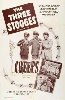 Creeps is a 1956 short subject directed by Jules White starring American slapstick comedy team The Three Stooges (Moe Howard, Larry Fine and Shemp Howard). It is the 168th entry in the series released by Columbia Pictures starring the comedians, who released 190 shorts for the studio between 1934 and 1959.