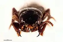 Clarke also noted its greatly reduced wings; this species, unlike most staphylinid beetles, is flightless. When disturbed, it still has a flight response, spreading its wings while running away.[1]