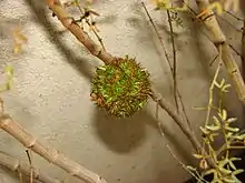 Creosote gall midges are a species of gall-inducing flies in the Asphondylia auripila group (Diptera: Cecidomyiidae). This group consists of 15 closely related species of flies which inhabit creosote bush (Zygophyllaceae: Larrea tridentata) sensu lato.[1] They have partitioned the plant ecologically with different gall midge species inhabiting the leaves, stems, buds, and flowers of creosote bush. Each species induces a uniquely shaped gall but the insects are otherwise morphologically very similar and very difficult to tell apart.