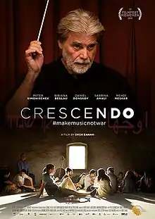 Crescendo is a 2019 German drama film directed by Dror Zahavi. It premiered at the Munich International Film Festival on July 3, 2019, where it received a 10-minute standing ovation.[2] It opened to the public in Germany on January 16, 2020, and is scheduled for release in American cinemas in June by Menemsha Films.[3] Due to the ongoing COVID-19 pandemic, the film will be released in virtual cinema starting May 1. The film received the 2020 Cinema for Peace Honorary Award.