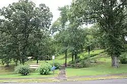 Crestview Park is a small neighborhood park in North Little Rock, Arkansas. It is roughly bounded by Cherry Hill Drive, Crestview Drive, and the westbound onramp to Interstate 40 from Arkansas Highway 107. The park, set on a steeply sloping parcel, has no major amenities, and was established for passive recreational uses of the nearby population. The park is notable for the presence of two naturalistic sculptures by Dionicio Rodriguez that were installed c. 1933. One is a footbridge that appears to have been fashioned out of a fallen tree, and the other is rustic shelter, one of Rodriguez' more unusual works.[2]