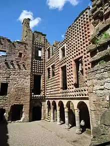 That year, James IV granted Crichton to Patrick Hepburn, 1st Earl of Bothwell, Lord Hailes, who was later made Earl of Bothwell. His son Adam, the second Earl, died at the Battle of Flodden in 1513. The castle became the property of his widow, Lady Agnes Stewart, who married Alexander Home, 3rd Lord Home in 1514.[1] Her son Patrick Hepburn, 3rd Earl of Bothwell inherited the castle. He intrigued with the English against the Scottish crown, but eventually made peace with the regent, Mary of Guise. James Hepburn, 4th Earl of Bothwell, sided with Mary of Guise during the Scottish Reformation, and when he took English money sent to the Lords of the Congregation, Regent James Hamilton, 2nd Earl of Arran ordered an assault on Borthwick and Crichton. Crichton was besieged and captured by the Earl of Arran and Master of Maxwell on 3 November 1559.[2] They ransacked Crichton and took away Bothwell's legal charters and evidences.[3]