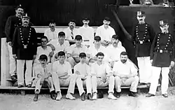 Neither side was nationally selected, nor representative. Great Britain, or England as they were called in the advertising handbills, were represented by a touring club side, the Devon and Somerset Wanderers. The side, formed by William Donne in 1894 for a tour of the Isle of Wight, had completed five other tours before travelling to France. The Wanderers were primarily formed from players of Castle Cary Cricket Club, five of whom played in the match, and also included four former pupils of Blundell's School, a public school in Devon. The side was completed by a number of players from the surrounding areas who were able to get away from business and personal commitments for the two-week period of the tour.[4] Writing in the Journal of Olympic History, Ian Buchanan describes that both sides "were made up of distinctly average club cricketers". Only two members of the Wanderers side, and none of the French side, played first-class cricket. Montagu Toller played six times for Somerset County Cricket Club, all in 1897, while Alfred Bowerman played for Somerset once in 1900, and again in 1905.[4]