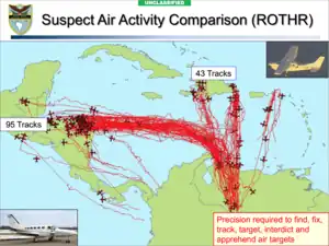 In September 2013, an incident involving men from the Venezuelan National Guard placing 31 suitcases containing 1.3 tons of cocaine on a Paris flight astonished French authorities.[63] On 15 February 2014, a commander for the Guard was stopped while driving to Valencia with his family and was arrested for having 554 kilos of cocaine in his possession.[65]