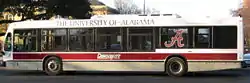 The CrimsonRide is an area bus service serving the students, staff, faculty, and general public on and around the University of Alabama's campus in Tuscaloosa, Alabama. The CrimsonRide is operated by First Transit, under contract with UA's Department of Transportation Services, and commenced operation on August 11, 2007.[2] The CrimsonRide replaced the previous Blue & Yellow Routes operated by the Tuscaloosa Transit Authority as the public transit option for students, staff, faculty, and general public on the UA campus.[3]