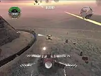 In keeping with the game's arcade nature, the armor and secondary ammunition of the player's aircraft can be replenished by flying into health and ammunition crates,[7] which are dropped by destroyed enemies and scattered throughout the terrain. Developers also added special maneuvers, such as the barrel roll and the Immelmann, which the player can perform during flight through manipulation of the analog sticks. Use of these stunts is governed by a "special meter" which recharges over time during play.[5]