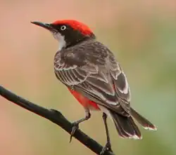 The crimson chat (Epthianura tricolor) is a species of small bird found in Australia. It is also known as the tricoloured chat, saltbush canary, and crimson-breasted nun.[2]