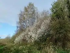 Habitat includes: Betula, Fagus, and Quercus forest.[14] Adults are primarily arboreal, but descend to visit flowering shrubs in sun-lit glades. These flies are extremely fast, with a high-pitched whine, zig-zagging between the branches of flowering trees. Flowers visited include Cardamine pratensis, Cornus sanguinea, Crataegus, Photinia, Prunus cerasus, Prunus spinosa, Rubus, Salix, and Sorbus aucuparia.[15] The flight period is from the beginning of March to mid May (later at higher altitudes).