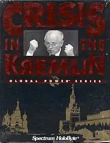 Crisis in the Kremlin is a 1991 strategy video game with managerial aspects in which the player acts as General Secretary of the Communist Party of the Soviet Union from 1985 to 2017.[3] The player assumes the role of the reformist Mikhail Gorbachev, the nationalist Boris Yeltsin, or the hardliner Yegor Ligachyov.[4] Actual jokes recorded by the KGB can be found in the gameplay, depicting the concerns of the Soviet people in a humorous light. The game was developed and released at a time when the Soviet Union was collapsing and breaking apart with the game's events making reference to that. Indeed, the Soviet Union dissolved in the same year as the game's release. A remake and spiritual successor of the game was published in 2017 on the game platform Steam.[5]