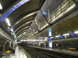 Cristóbal Colón is an underground metro station on the Line 4 of the Santiago Metro, in Santiago, Chile. This station is named for Cristóbal Colón Avenue, which in turn was named after Christopher Columbus. The station was opened on 30 November 2005 as part of the inaugural section of the line between Tobalaba and Grecia.[2]