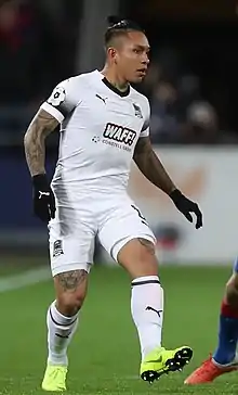 Cristian Leonel Ramírez Zambrano (Spanish pronunciation: [ˈkɾistjan raˈmiɾes]; born 12 August 1994) is an Ecuadorian professional footballer who plays as a left-back for Krasnodar of the Russian Premier League.[2] Fast, intelligent, ambidextrous and a great dribbler are the qualities of Ramirez which has led to the foreign press comparing him to Roberto Carlos.[3][4][5][6][7][8][9]