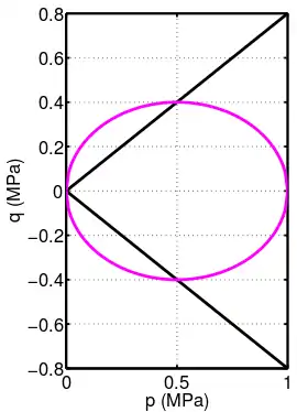 where is the equivalent stress, is the pressure, is the pre-consolidation pressure, and is the slope of the critical state line in space.