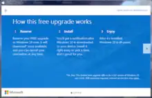 {{cite web}}: CS1 maint: unfit URL (link) - Myerson, Terry (October 29, 2015). "Making it Easier to Upgrade to Windows 10". Windows Experience Blog. Retrieved April 17, 2019.