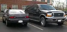 The initial tests of the Ford Excursion were "horrifying" for its ability to vault over the hood of a Ford Taurus. The big SUV was modified to include a type of blocker bar suggested by the French transportation ministry in 1971, a kind of under-vehicle roll bar designed to keep the large Ford Excursion from rolling over cars that were hit by it.[13] The problem is "impact incompatibility", where the "hard points" of the end of chassis rails of SUVs are higher than the "hard points" of cars, causing the SUV to override the engine compartment and crumple zone of the car.[14] There have been few regulations covering designs of SUVs to address the safety issue.[15] The heavy weight is a risk factor with very large passenger cars, not only with SUVs.[15] The typically higher SUV bumper heights and those built using stiff truck-based frames, also increases risks in crashes with passenger cars.[15] The Mercedes ML320 was designed with bumpers at the same height as required for passenger cars.[16]