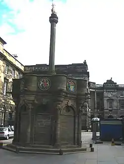 Cromwell's Act of Grace, or more formally the Act of Pardon and Grace to the People of Scotland,[1] was an Act of the Parliament of England that declared that the people of Scotland (with certain exceptions) were pardoned for any crimes they might have committed during the Wars of the Three Kingdoms. It was proclaimed at the Mercat Cross in Edinburgh on 5 May 1654. General George Monck, the English military governor of Scotland, was present in Edinburgh, having arrived the day before for two proclamations also delivered at the Mercat Cross, the first declaring Oliver Cromwell to be the protector of England, Ireland and Scotland, and that Scotland was united with the Commonwealth of England.