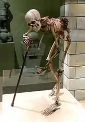 Scoliosis may be a byproduct of strong selection for bipedalism. For a bipedal stance, a highly mobile, elongated lower spine is very beneficial.[112] For instance, the human spine takes on an S-shaped curve with lumbar lordosis, which allows for better balance and support of an upright trunk.[113] Selection for bipedality was likely strong enough to justify the maintenance of such a disorder. Bipedality is hypothesized to have emerged for a variety of different reasons, many of which would have certainly conferred fitness advantages. It may increase viewing distance, which can be beneficial in hunting and foraging as well as protection from predators or other humans; it makes long-distance travel more efficient for foraging or hunting; and it facilitates terrestrial feeding from grasses, trees, and bushes.[114] Given the many benefits of bipedality which depends on a particularly formed spine, it is likely that selection for bipedalism played a large role in the development of the spine as we see it today, in spite of the potential for "scoliotic deviations".[112] According to the fossil record, scoliosis may have been more prevalent among earlier hominids such as Australopithecus and Homo erectus, when bipedality was first emerging. Their fossils indicate that there may have been selected over time for a slight reduction in lumbar length to what we see today, favouring a spine that could efficiently support bipedality with a lower risk of scoliosis.[112]
