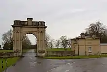 The London Arch is the main entrance to the park.[30] It was designed by Robert Adam in the 1770s. It gained its name from the carriages of guests travelling from London, passing under it.[31] It once had railings on either side, which are thought to have been removed during the Second World War.[30] Its restoration started in 2013, including the repair of water damage to the central masonry; the restoration was due to last five years.[31]