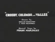 Crosby, Columbo, and Vallee is a 1932 Warner Bros. Merrie Melodies cartoon short directed by Rudolf Ising.[1] The short was released on March 19, 1932.[2] It lampoons the popularity of crooners among young women, with popular crooners Bing Crosby, Russ Columbo, and Rudy Vallée being the namesake of the film.