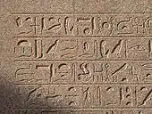 (Example hieroglyph relief). The Cross-ndj hieroglyph is shown in the bottom line at the beginning (at right)(reads right-to-left):