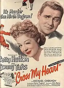 Cross My Heart is a 1946 American comedy film directed by John Berry and starring Betty Hutton, Sonny Tufts and Rhys Williams. It was a remake of the 1937 film True Confession, which was itself based on the 1934 French play Mon Crime written by Georges Berr and Louis Verneuil.[1]