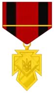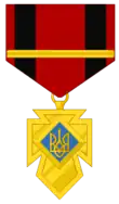 The Cross of Merit (Ukrainian: Хрест Заслуги) was an award of Ukrainian Insurgent Army. It awarded for distinguished services to the state and people of the Ukrainian army. The Order was instituted on January 27, 1944 by the Ukrainian Supreme Liberation Council leaders, Roman Shukhevych and Dmytro Hrytsai.