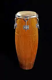 However, this 4:3 is within a duple beat scheme, with duple (quadruple) subdivisions of the beats. Since the musical period is a cycle of four main beats, the 4:3 cross-rhythm significantly contradicts the period by cycling every three main beats. The complete cross-beat cycle is shown below in relation to the key pattern known in Afro-Cuban music as clave. (Rumba, p. xxxi)[12] The subdivisions are grouped (beamed) in sets of four to reflect the proper metric structure. The complete cross-beat cycle is three claves in length. Within the context of the complete cross-rhythm, there is a macro 4:3—four 4:3 modules-against-three claves. Continuous duple-pulse cross-beats are often sounded by the quinto, the lead drum in the Cuban genres rumba and conga. (Rumba, pps. 69–86)[12][lower-alpha 2][lower-alpha 3]