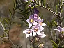 Crowea angustifolia is a flowering plant in the family Rutaceae, and is endemic to the south-west of Western Australia. It is an erect shrub growing to 3 m (10 ft) high by 1.0 m (3 ft) in diameter with white or pink flowers in spring.
