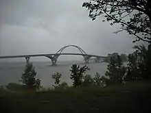 The eastern town line, defined by Lake Champlain, is the border of Vermont (Addison County). The Champlain Bridge (Route 17) connected Crown Point to Vermont until 2009, when the bridge was demolished as unsafe. A temporary ferry service, operated by the Lake Champlain Transportation Company and funded by the states of New York and Vermont, provided access from Crown Point to Vermont from late 2009 until late 2011. The new bridge at Crown Point, scheduled to open in August 2011,[5][6] opened to traffic that November.