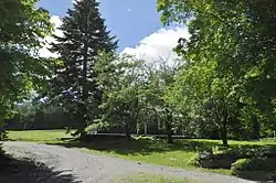 The Crows Nest is located on the west side of Sturgis Drive in northwestern Wilmington. Sturgis Drive is a former alignment of nearby Coldbrook Road, the principal road from the village center to its northwest. The farmstead originally consisted of 100 acres (40 ha), including land as far north as the current alignment of Coldbrook Road and as far east as Mann Road, which has been sold off for development. The remaining portions of the original farmstead now consist of 75 acres, most of which has been allowed to revert to woodland, and a roughly rectangular hay meadow above the farmstead complex,[2] which now consists of just the original farmhouse and a modern barn.