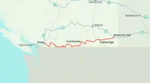 The following is a list of major intersections along the Crowsnest Highway:[2][10][6][11]