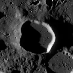 Crozier is a lunar impact crater that is located on the southwest edge of Mare Fecunditatis, a lunar mare in the eastern part of the Moon's near side. It lies to the east-northeast of the prominent crater Colombo, and southeast of the small crater Bellot.