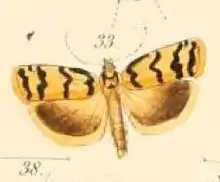 The ground color of forewings is yellow.[2]