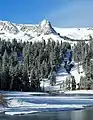 Crystal Crag is a 10,377-foot-elevation (3,163 meter) summit located in the Sierra Nevada mountain range in Mono County of northern California, United States.[4] This photogenic landmark, popular with rock climbers,[6] is situated approximately three miles south of the community of Mammoth Lakes, on land managed by Inyo National Forest. Topographic relief is significant as the north aspect rises 1,300 feet (400 meters) above Lake George in one-half mile. Crystal Lake lies below the west aspect and T J Lake below the east aspect. Precipitation runoff from the peak drains into these three lakes, thence north to Mammoth Creek. This mountain's toponym has been officially adopted by the United States Board on Geographic Names.[4]