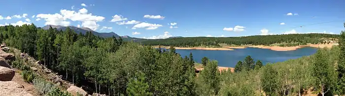 Crystal Creek Reservoir is a reservoir on Crystal Creek on the northwest side of Pikes Peak in Teller County, Colorado. The reservoir is impounded by Crystal Creek Dam, which is on the border of Teller and El Paso counties. The reservoir and surrounding Pike National Forest land offers opportunities for boating, fishing, camping, and hunting, among other activities and can be accessed from the Pikes Peak Highway.[1][2] It is one of three reservoirs that are part of the North Slope Recreation Area located northeast of Colorado Springs.[3]