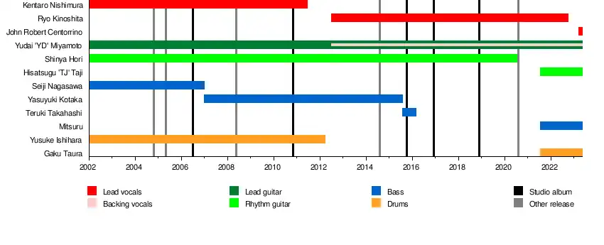 On 3 August 2015, it was announced that bassist Yasuyuki Kotaka had decided to leave the band due to his illness.