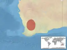 The distribution range of this species extends from the Goldfields to the Darling Range, and to the southern coastline. It is recorded at the Archipelago of the Recherche, offshore granite islands, and a reddish form is noted in the Murchison district.